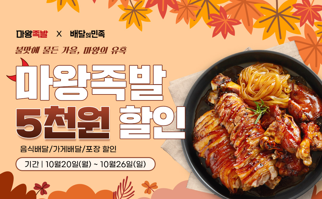 [마왕족발X배달의민족] '불맛에 물든 가을, 마왕의 유혹' 5천 원 할인 이벤트