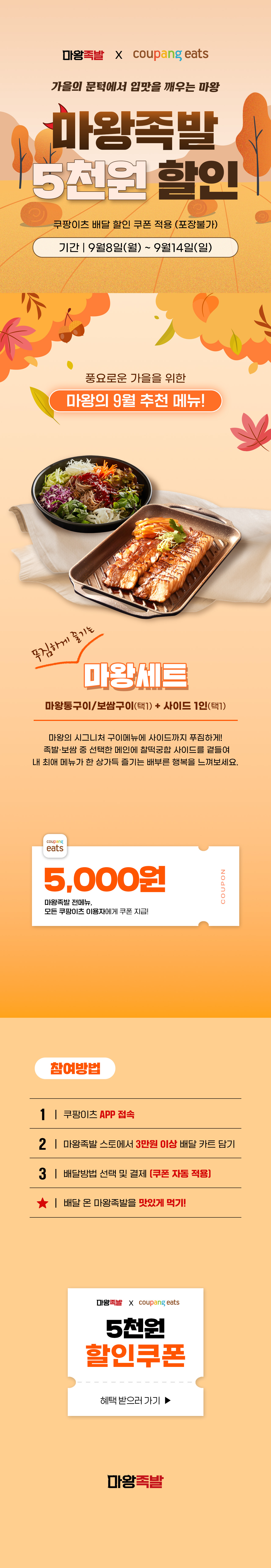 [마왕족발X쿠팡이츠] '가을의 문턱에서 입맛을 깨우는 마왕' 5천원 할인 이벤트